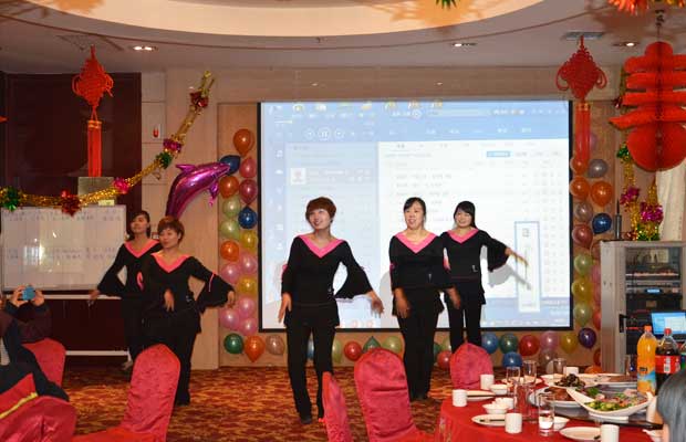 用餐过后,联欢会正式拉开帷幕,在市场部唯一男将刘伟的带领下,首先为我们盘点了2013年的新闻、娱乐及社会热点,流畅的解说,生动的表演,精美的视频组成了《回忆• 2013》的经典。