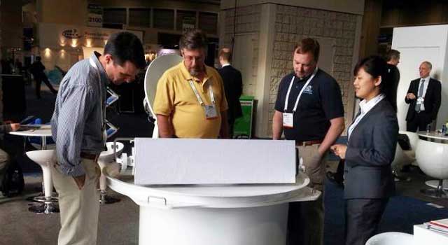 SATELLITE 2014于美国当地时间3月10日-14日在华盛顿政治会议中心(Walter E. Washington Convention Center)拉开帷幕,SATPRO(星展测控)携带车载平板动中通天线T650,船载动中通IP120,B80,IP180首次亮相。